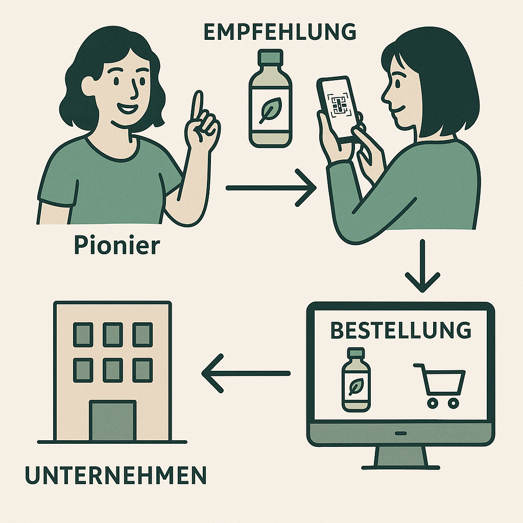 stellen das Produkt aktiv in ihrem Umfeld vor und teilen ihre Erfahrungen.